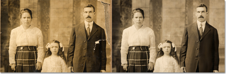 Bringing an old photograph back to life is in itself a form of art. It takes many long hours of skilled craftsmanship and love to restore your precious memories. Since some photographs may require more care and attention than others, we offer various levels of restoration services. (And remember, all restoration is done on a copy print, so there’s absolutely no damage to your original.)